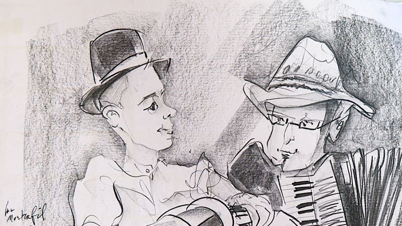 Gare au retour de manivelle ! Gurvan Kerboeuf, à la vielle à roue, et Fabien Robbe, à l’accordéon, nous renvoient à nos racines pas forcément carrées. À ce cher Pays gallo dont les danses ne tournent pas toujours en rond, mais nous invitent plutôt à batifoler en couples ou en quadrettes. Merci les gars.