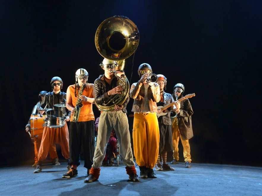 Les Mugiciens d’Ooz Band débarquent Klaxophonéthique drumming-brass brazilistique.