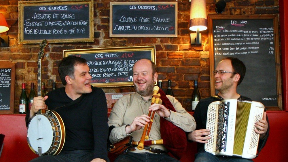 Durant les années folles, il y avait Joséphine Baker, Jean Wiener, les surréalistes et déjà le trio cabrette- accordéon-banjo très en vogue dans la communauté des auvergnats de Paris. Que les musiques populaires de tradition orale soient l’avant-garde d’aujourd’hui ! Michel Esbelin (un costaud de la lune), Ludovic Rio (que l’on croise souvent au Kafe Koefet) et Olivier Sulpice (toujours debout sur le zinc) font magnifiquement vivre et revivre cette formule ainsi que le répertoire des danses et musiques d’Auvergne. Avec swing, efficacité et simplicité ! Ce sont les années Flor !