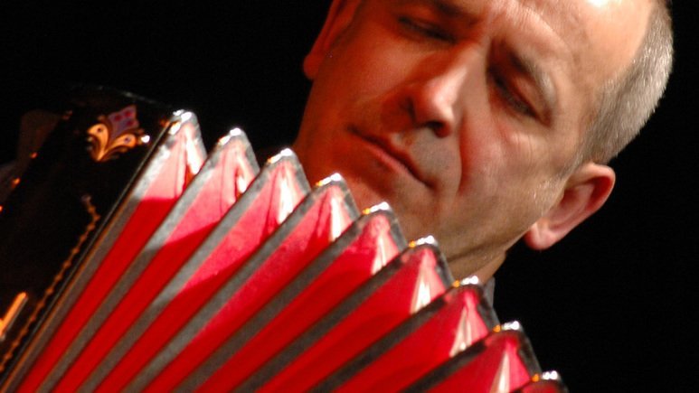 C’est le roi de l’accordéon-gavotte. Héritier de célèbres prédécesseurs comme Yves Menez et de grands chanteurs, il trône élégamment avec son piano à bretelles. Et n’a pas son pareil pour nous faire grimper non pas aux rideaux, mais au sommet des Monts d’Arrée où il puise son répertoire. Assurément l’un des maillons forts de la danse en chaîne.