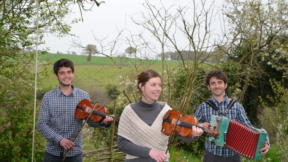 « Eyou q’tu vâ terti tertan ? » demandait la prairie, « et qhe q’ça peut t’foutt, à tâ, touzë tou l’z’an ? » narguait le ruisseau… C’est sur cette énigme populaire que se répondent le chant de Laure-Elise Tardif et l’accordéon de Corentin Le Doujet, au son du violon de Youenn Hauchecorne. Ce trio des rives de l’Arguenon vous propose de quitter les sentiers battus et de sillonner la Haute-Bretagne, en suivant les méandres des airs à danser du pays gallo. Conter’danses et mazurkas tutoient aréoplanes et danses jeux, à la mode des violoneux et sonnous d’pouche animateurs de bal...